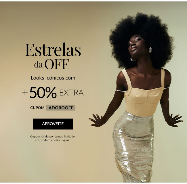 Em caso de devolução de pedidos realizados em ações promocionais ou com cupom de desconto, os mesmos serão considerados. As promoções na OFF Premium não são cumulativas. Sempre que você optar pela promoção disponível, outras promoções ativas no site ou em outros canais serão automaticamente invalidadas, e vice-versa.